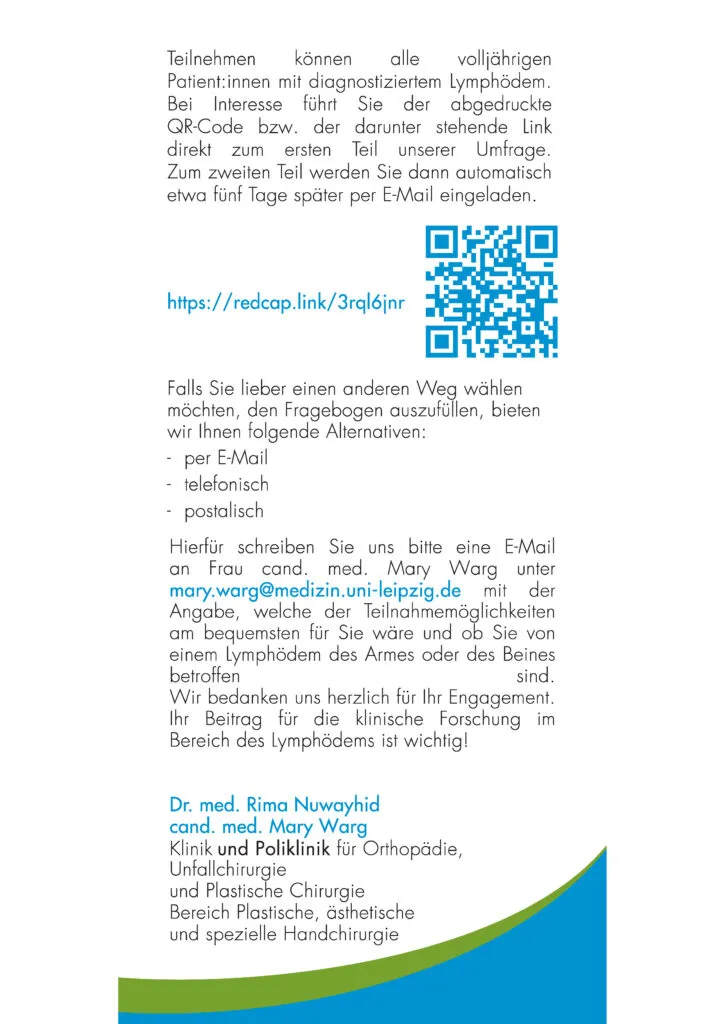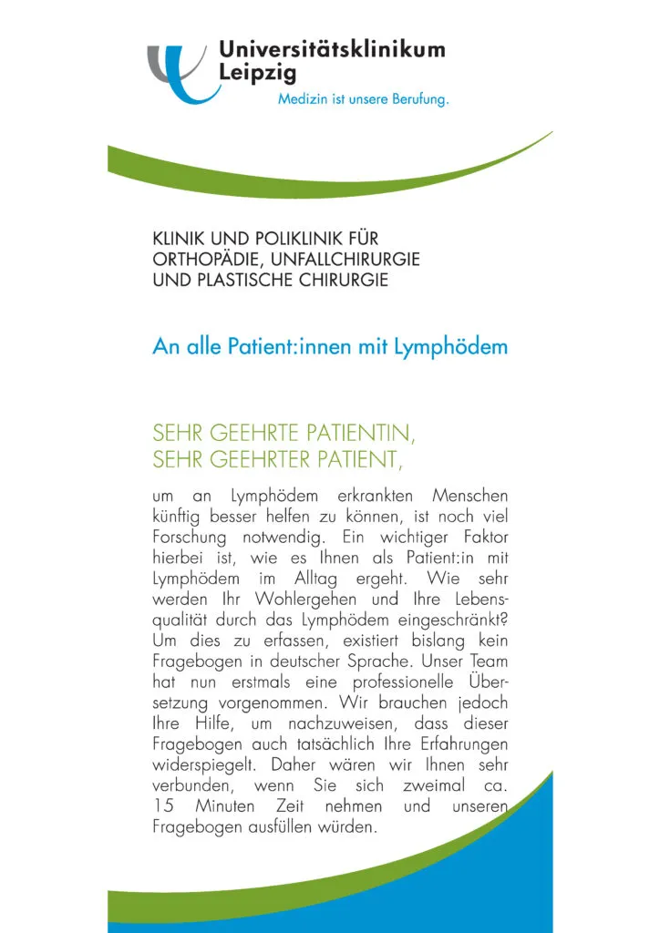 Fragebogen für Lymphödem-Studie